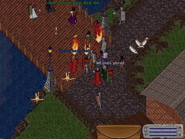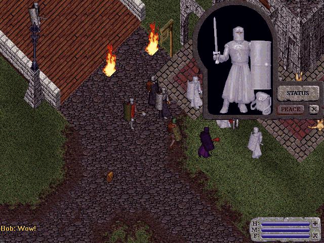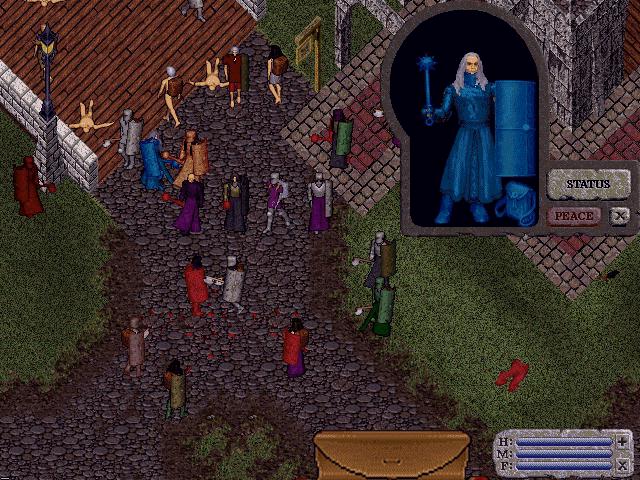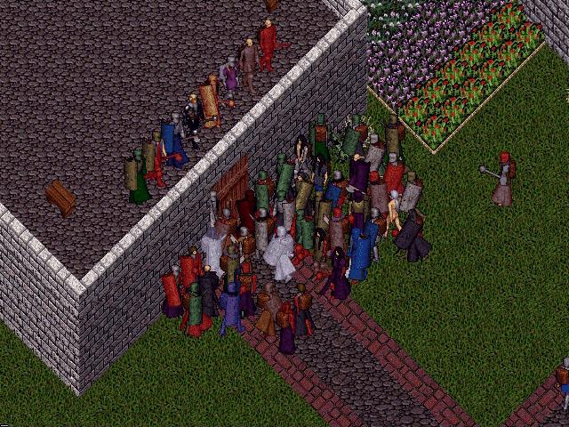 crowd at his Castle, Lord British wishes all farewell as the moongates to